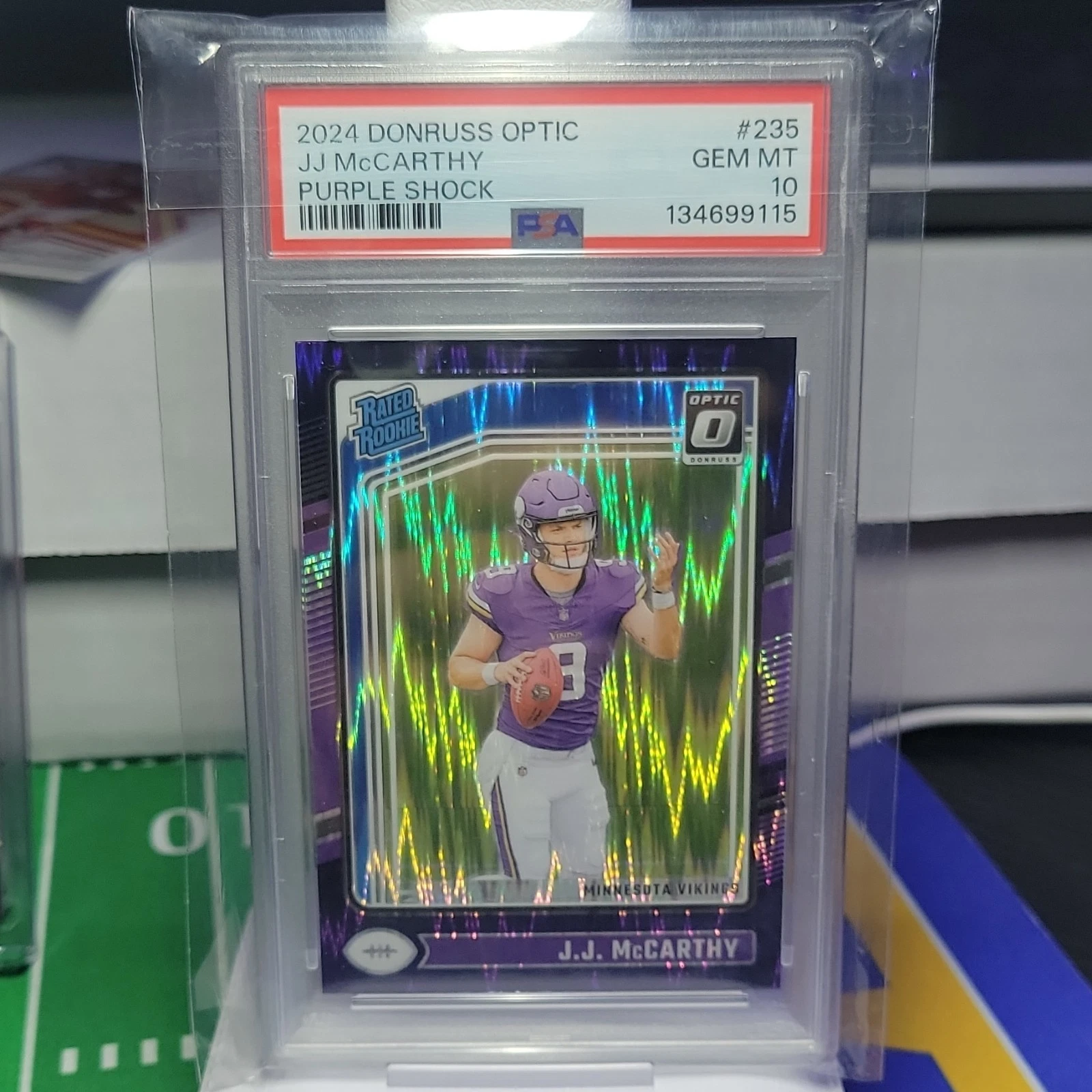 Panini 2024 Donruss Optic Rated Rookie J.J. McCarthy #235 Purple Shock PSA 10 V…