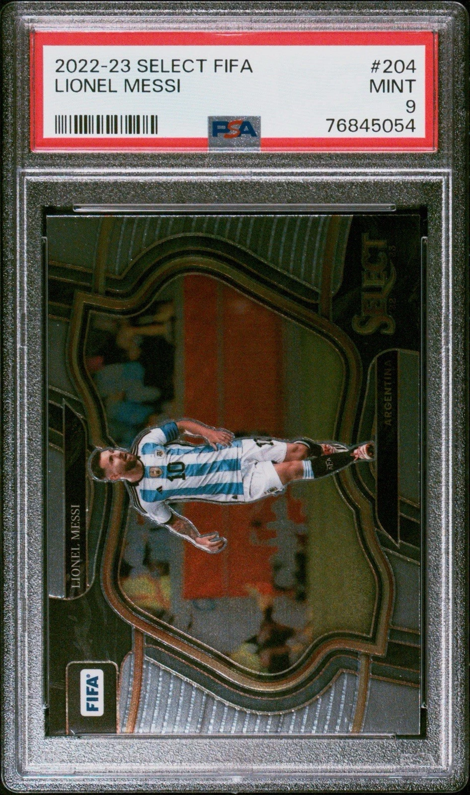2022-23 Panini Select FIFA Field Level Lionel Messi #204 Silver Prizm PSA 9