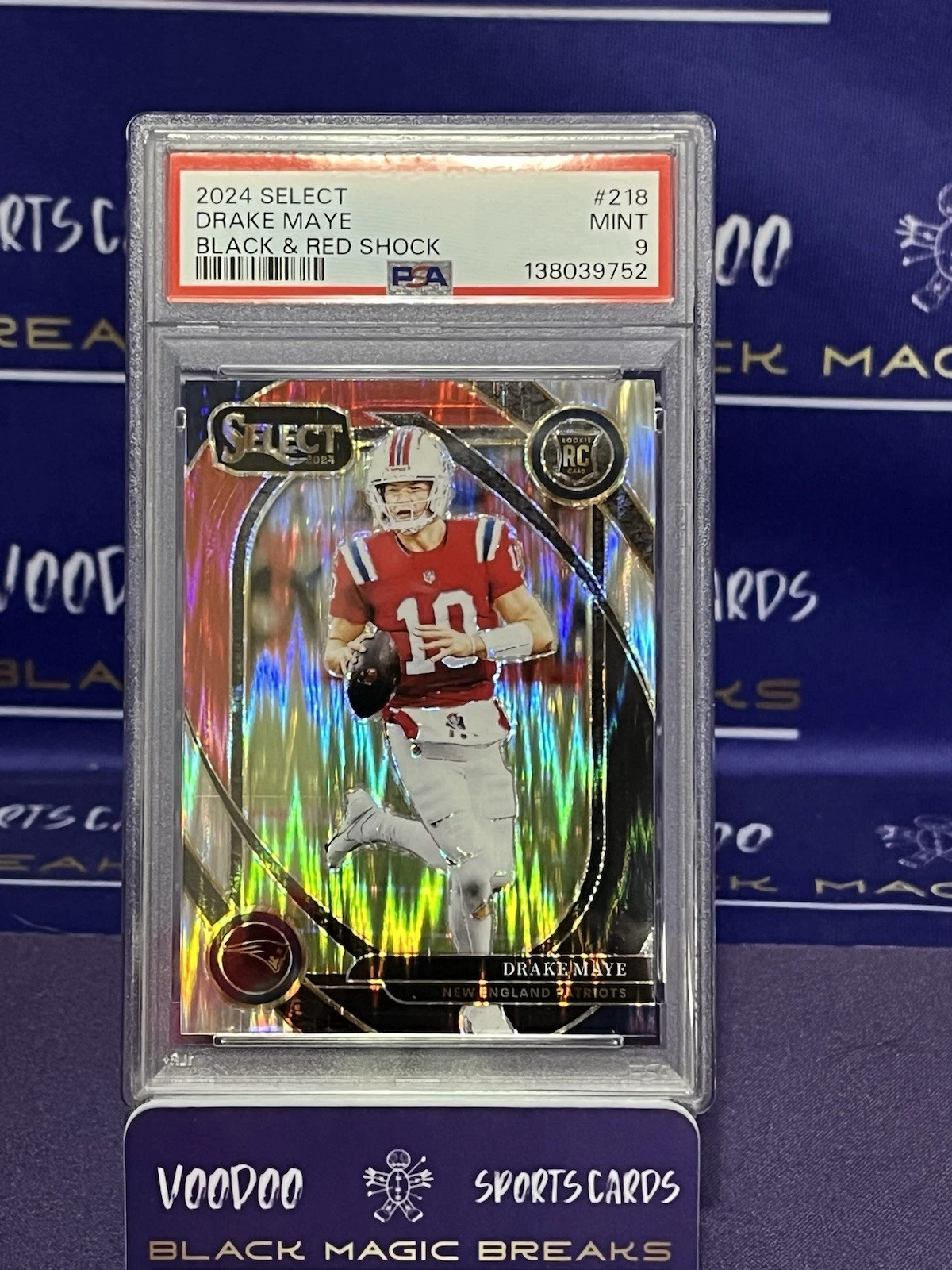 2024 Panini Select - Club Level Drake Maye Red & Yellow Shock Prizm (RC) PSA 9