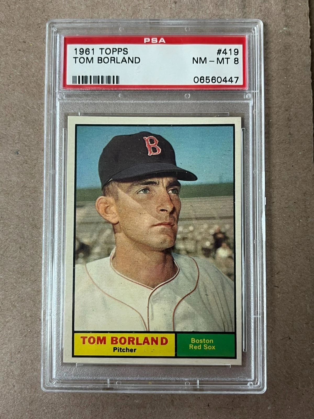 1961 Topps Tom Borland #419 Boston Red Sox Graded PSA 8 NM-MT