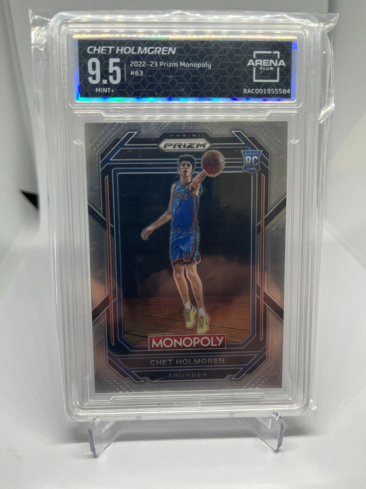 2022-23 panini prizm monopoly chet holmgren rc rookie #63 thunder ac 9.5 mint+