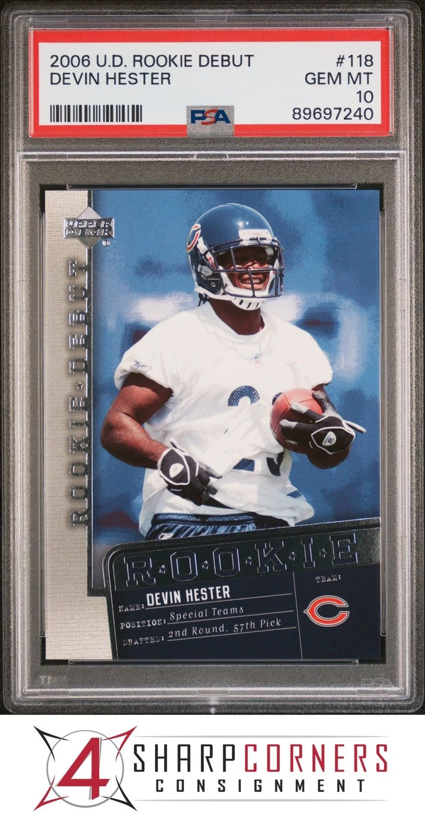 2006 upper deck rookie debut #118 devin hester rc bears hof psa 10
