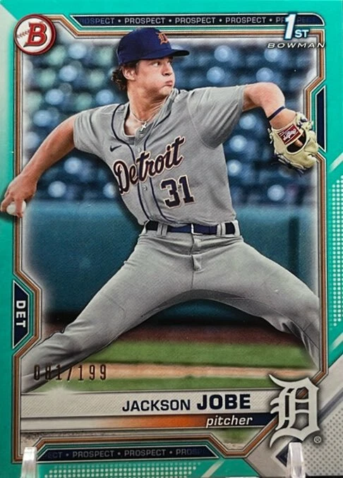 2021 bowman draft 1st rookie card #bd-69 jackson jobe tigers rc