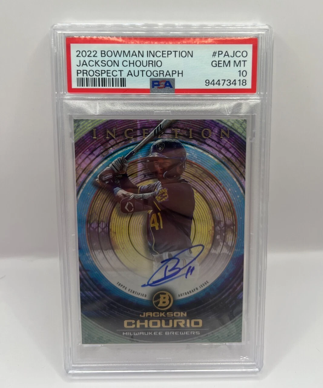 2022 bowman inception - prospect autographs jackson chourio psa gem 10