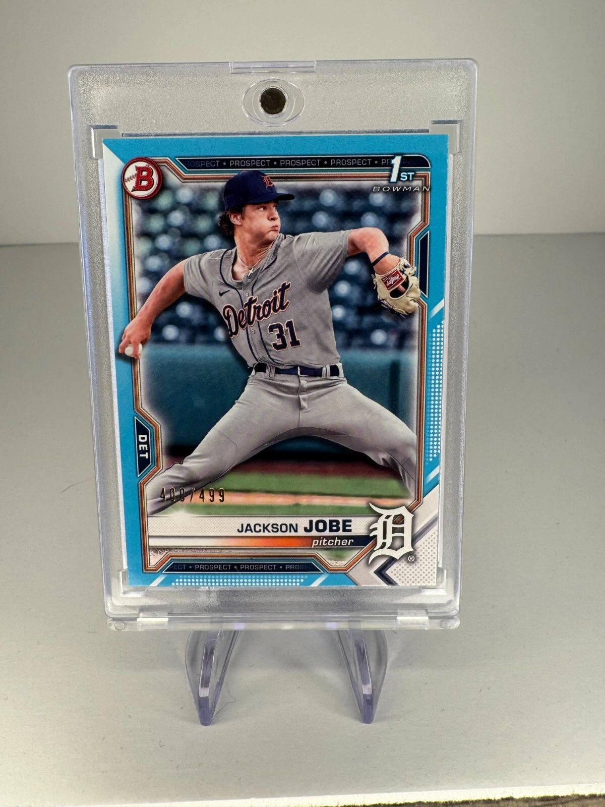 2021 bowman draft - jackson jobe #bd-69 sky blue 1st /499 detroit tigers